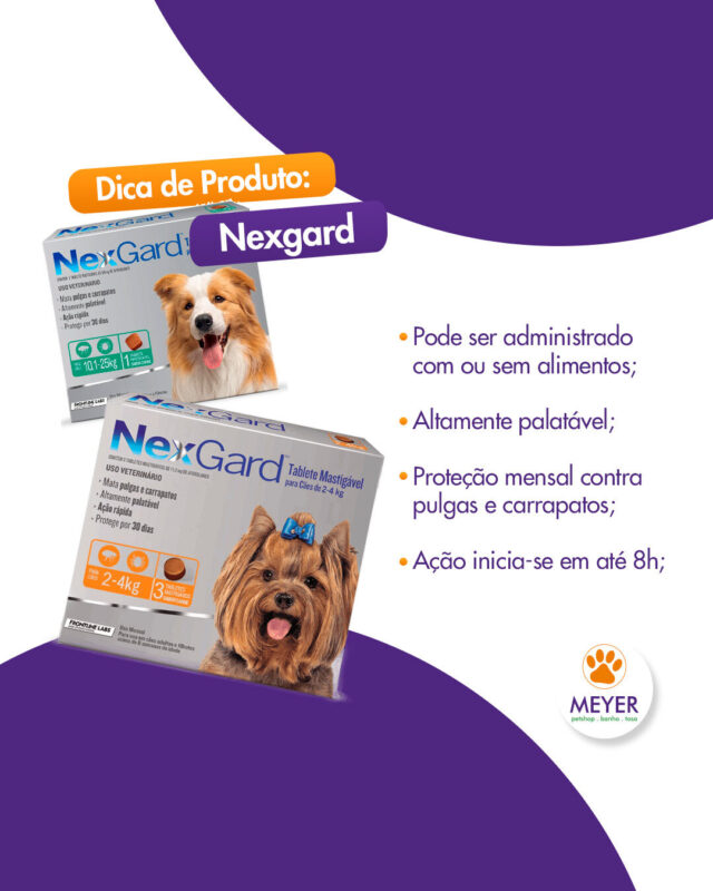 O Nexgard é um tablete mastigável que protege seu pet por 30 dias, com ação que começa em até 8h. Além disso, pode ser administrado com ou sem alimentos e é altamente palatável!